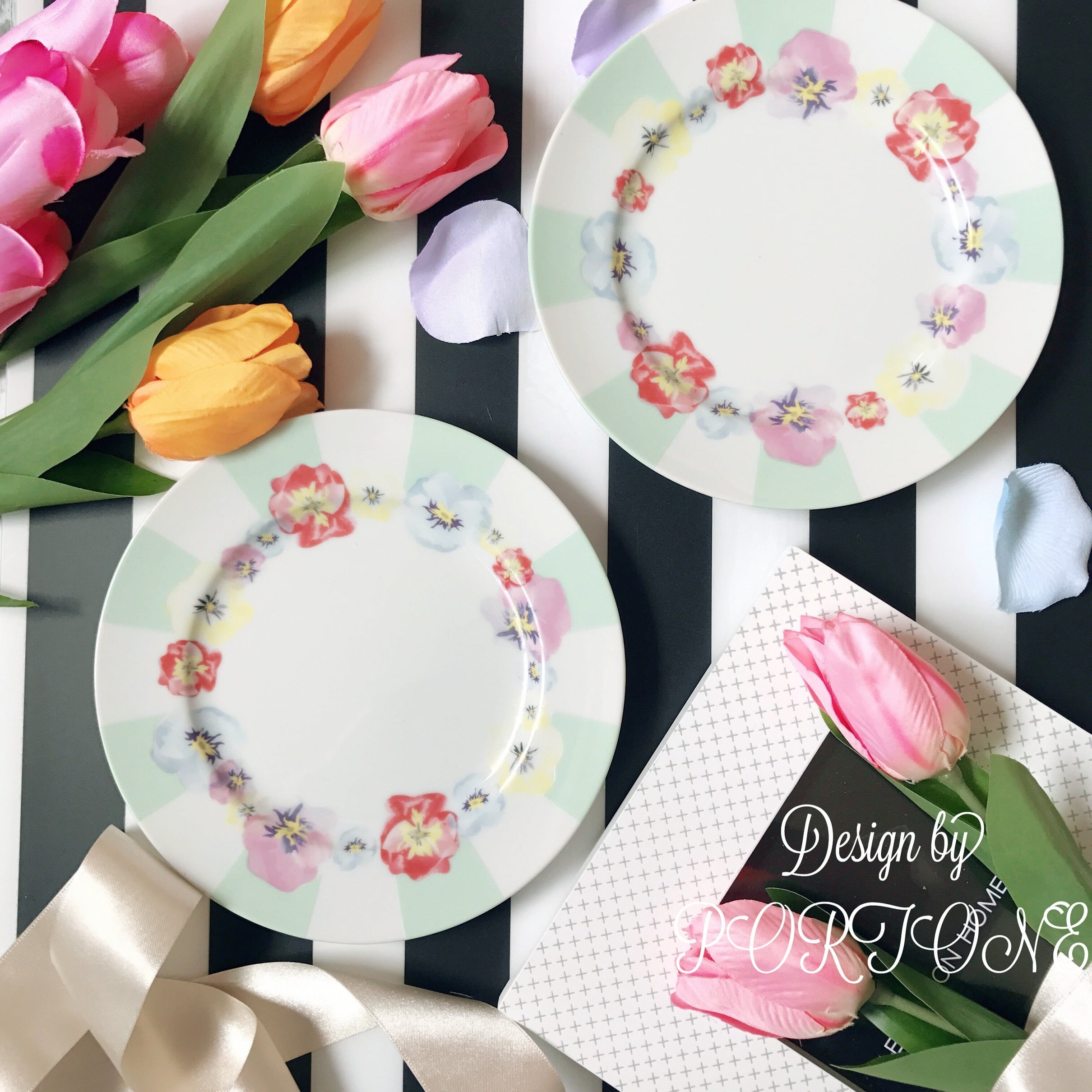 A4サイズに隙間なくぎっしり詰まった色とりどりのパンジーが華やかに白磁を彩ります。